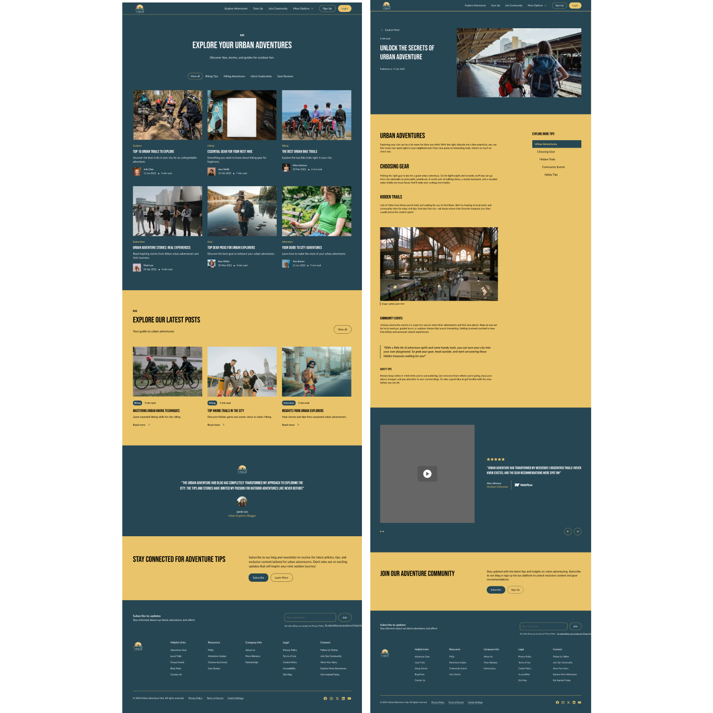 Urban Adventure Hub didn’t have a clear way to present urban exploration content in a structured and engaging way. There was no brand identity, no organized content system, and no easy way for users to browse or filter through blog posts. Everything felt scattered and unclear, especially when it came to showcasing different types of adventures.