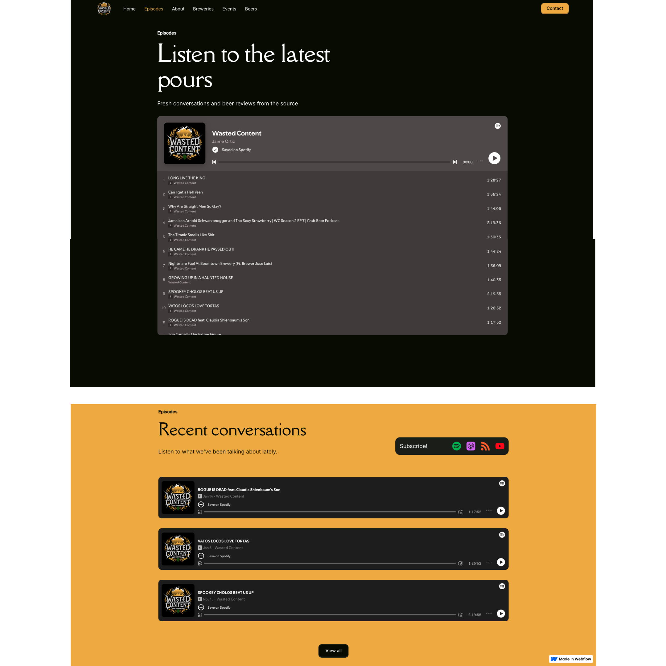 I built them a full Webflow site that brings everything together. Integrated a Spotify embed so people can listen right away, created an events system where users can view and save spots, and added a blog so they can post content and stay active.